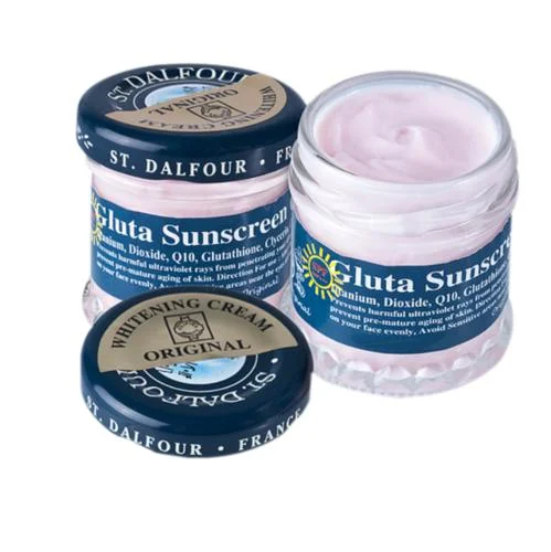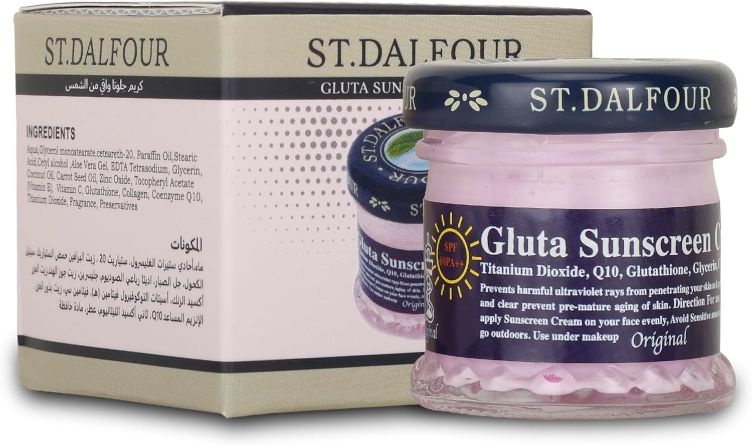 سانت دالفور جلوتا واقي شمسي هو كريم حماية من الشمس يوفر حماية عالية بعامل SPF 90. يحتوي على مكونات مثل ثاني أكسيد التيتانيوم، Q10، الجلوتاثيون والجلسرين. يعمل على حماية البشرة من الأشعة فوق البنفسجية الضارة ويمنع علامات الشيخوخة المبكرة. كما أن تركيبته مصممة لتكون خفيفة الوزن ويمكن استخدامها قبل المكياج.