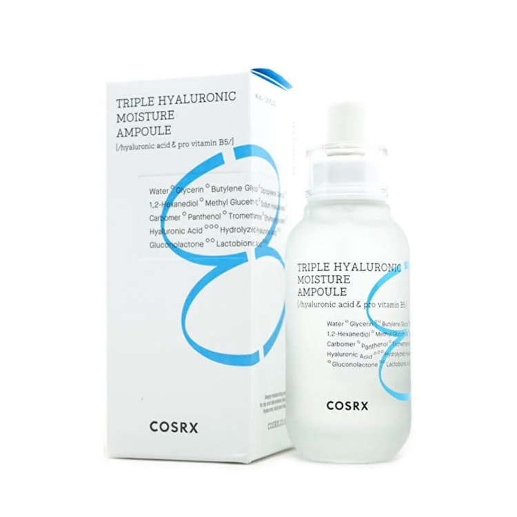 אמפולת הלחות המשולשת של COSRX מכילה נוסחה מרוכזת עם שלושה סוגים של חומצה היאלורונית שמספקת לחות עמוקה ומתמשכת לעור. היא מסייעת בשיפור גמישות העור, בהגנה מפני יובש ומשאירה את העור רך ומוצק. יש למרוח לאחר ניקוי הפנים ולפני קרם לחות, כחלק משגרת טיפוח יומית או לילית. מתאימה לכל סוגי העור, כולל עור רגיש, ומשאירה את העור רענן וזוהר.