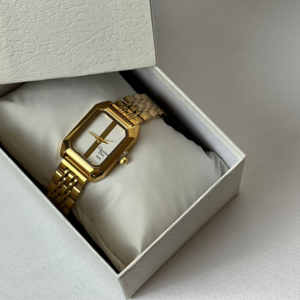 تجسد ساعة كارتييه "بانثير" هذه قمة الأناقة الأنثوية والترف. تتميز بسوارها الأنيق الذي يمزج بين الذهبي والفضي، مع علبة ذهبية تبرز ميناءً مربعًا بلون وردي ناعم وتفاصيل مرصعة حول الإطار، مما يضفي عليها لمسة من الفخامة والجاذبية. إنها الخيار الأمثل للمرأة التي تبحث عن قطعة تجمع بين الكلاسيكية والتألق.